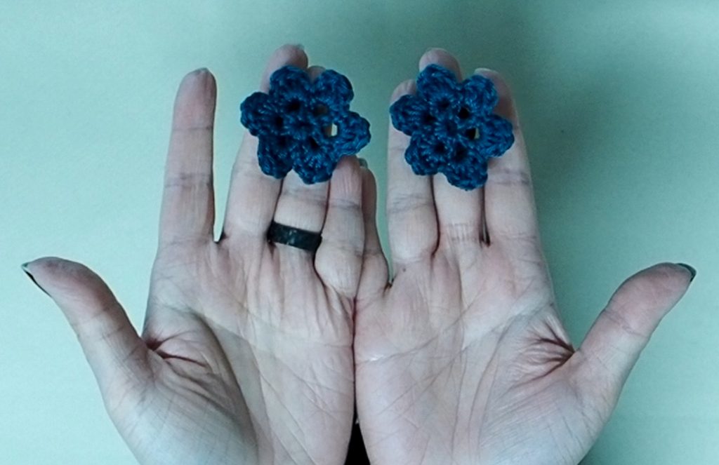 To close the cardigan, crochet flowers and sew them onto buttons leaving a long stem. You can use your preferred flower pattern here, I’ll share the simple ones I made.